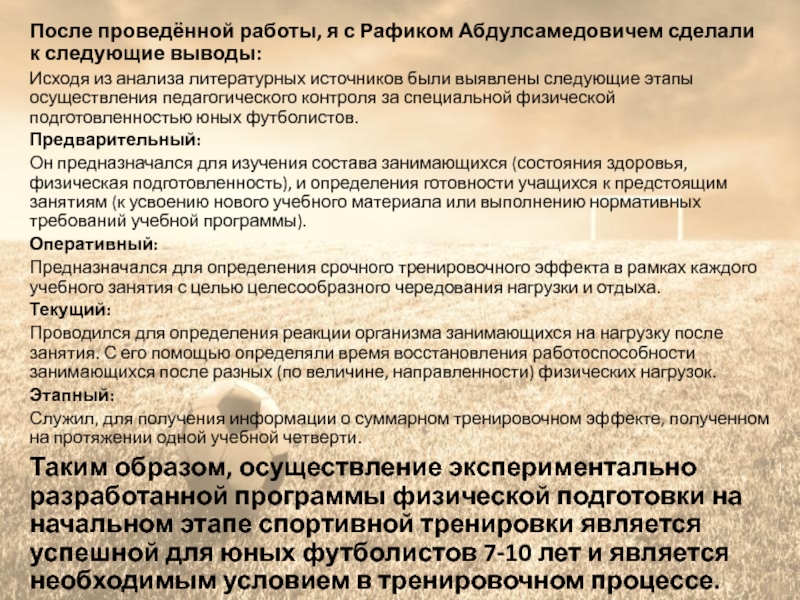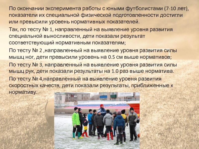 По окончании эксперимента работы с юными футболистами (7-10 лет),