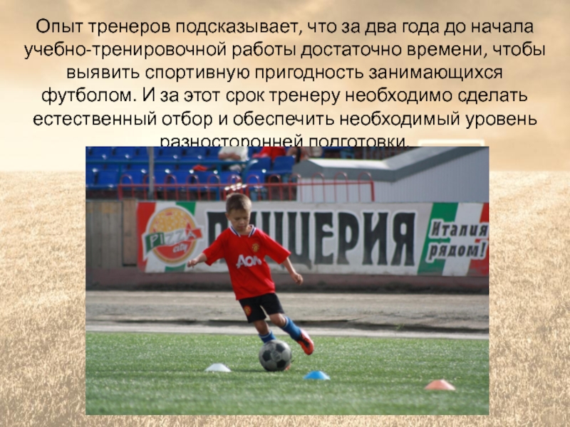 за этот срок тренеру необходимо сделать естественный отбор и обеспечить необходимый уровень разносторонней подготовки.