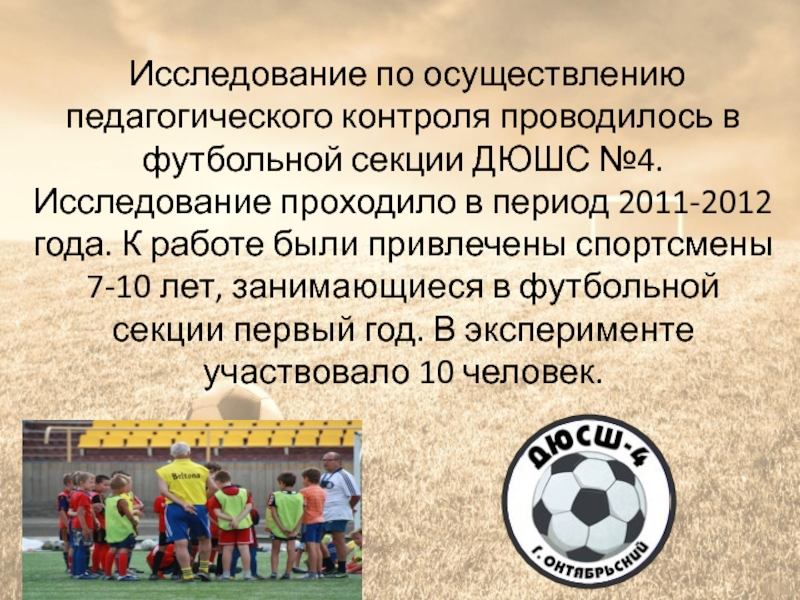 футбольной секции ДЮШС №4. Исследование проходило в период 2011-2012 года.