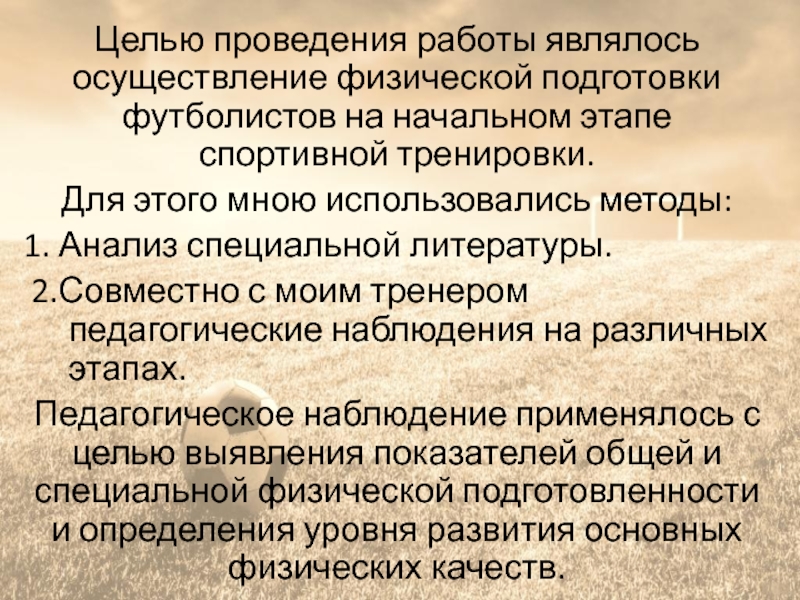 Целью проведения работы являлось осуществление физической подготовки футболистов на