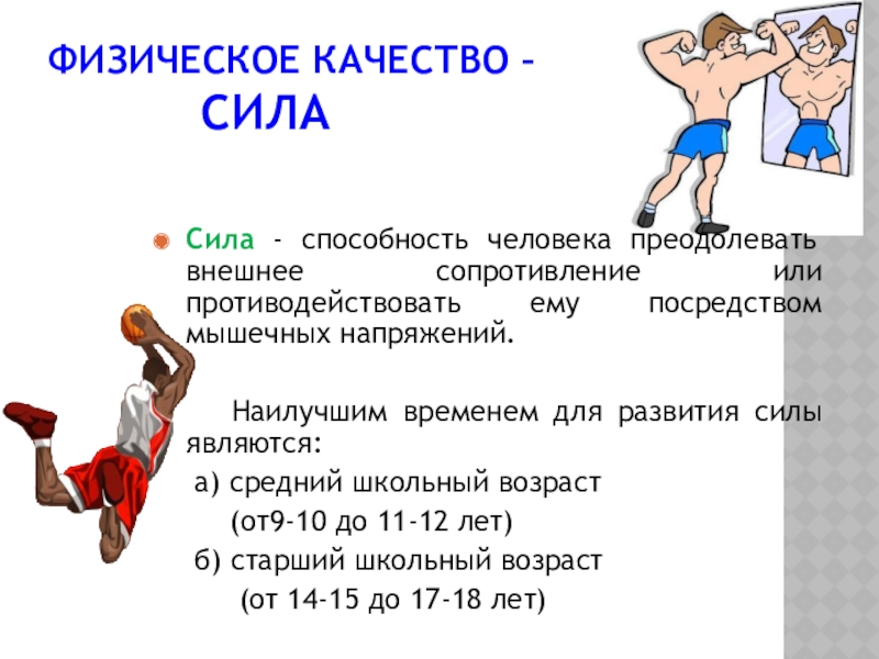 Сила - способность человека преодолевать внешнее сопротивление или противодействовать ему