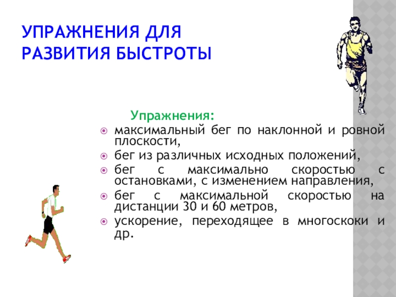 бег с максимальной скоростью на дистанции 30 и 60 метров,
