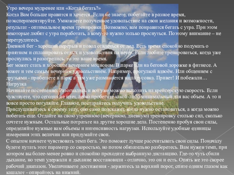 Слайд 9Утро вечера мудренее или «Когда бегать?»