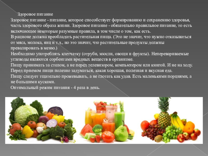 Слайд 10 Здоровое питание