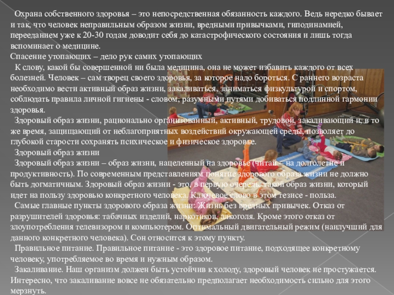 Слайд 6 Охрана собственного здоровья – это непосредственная обязанность каждого. Ведь