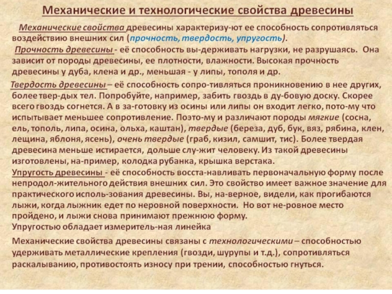 Слайд 68При сжатии влажной и нагретой древесины, после прекращения действия внешней