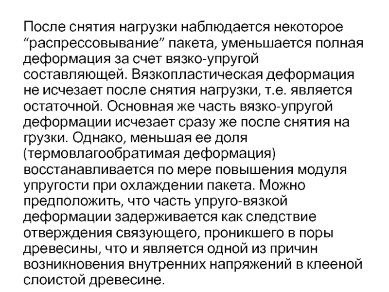 Слайд 73После снятия нагрузки наблюдается некоторое “распрессовывание” пакета, уменьшается полная деформация