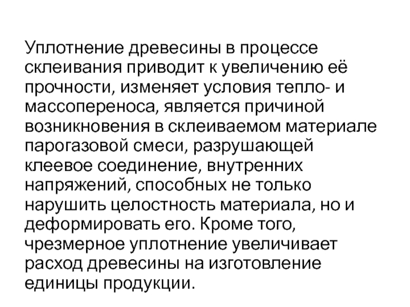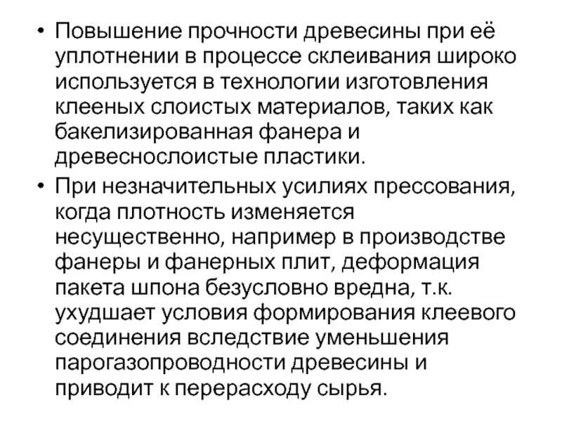 Слайд 70Уплотнение древесины в процессе склеивания приводит к увеличению её прочности,