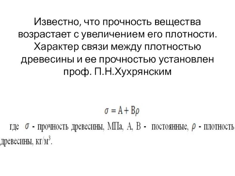 связи между плотностью древесины и ее прочностью установлен проф. П.Н.Хухрянским