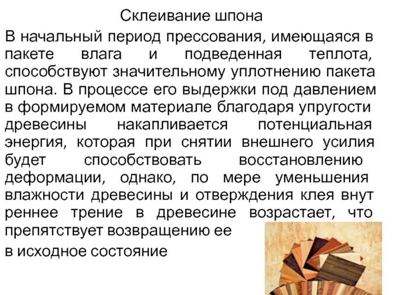 Слайд 71Экспериментально установлено, что при склеивании шпона в производстве фанеры полная