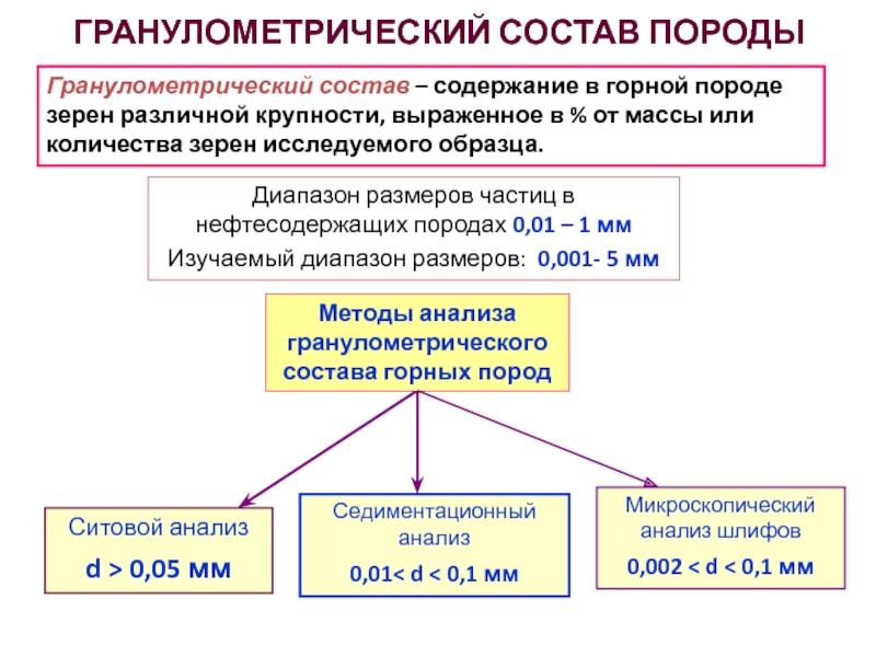 Диапазон размеров частиц в нефтесодержащих породах 0,01 – 1 мм
