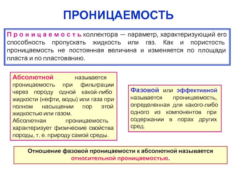 Абсолютная проницаемость характеризует физические свойства породы, т. е. природу самой среды.