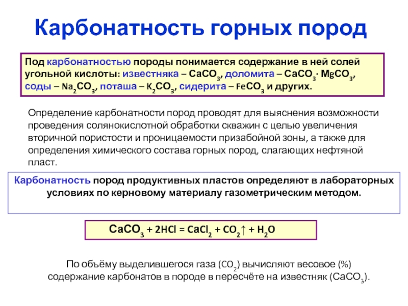 Карбонатность пород продуктивных пластов определяют в лабораторных условиях по керновому материалу газометрическим методом.
