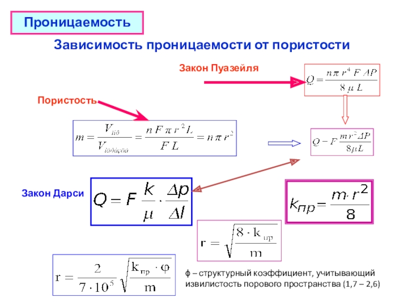 Физический смысл размерности коэффициента проницаемости – это величина площади сечения каналов пористой среды горной породы, по которым происходит фильтрация флюидов.