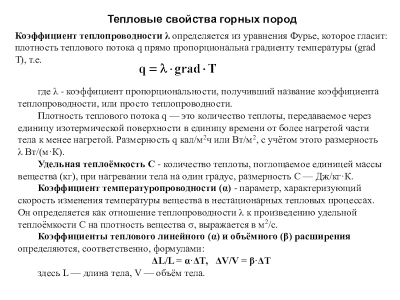 Плотность теплового потока q — это количество теплоты, передаваемое через единицу изотермической поверхности в единицу времени от более нагретой части тела к менее нагретой. Размерность q кал/м2ч или Вт/м2, с учётом этого размерность λ Вт/(м·К).