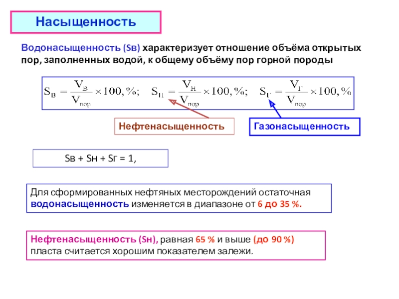 Нефтенасыщенность (Sн), равная 65 % и выше (до 90 %) пласта считается хорошим показателем залежи.