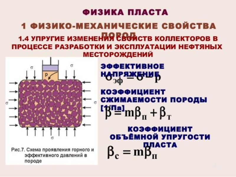 Упругие свойства горных пород и влияют на перераспределения давления в пласте в процессе эксплуатации месторождения. Давление в пласте, благодаря упругим свойствам пород, перераспределяется не мгновенно, а постепенно после изменения режима работы скважины.