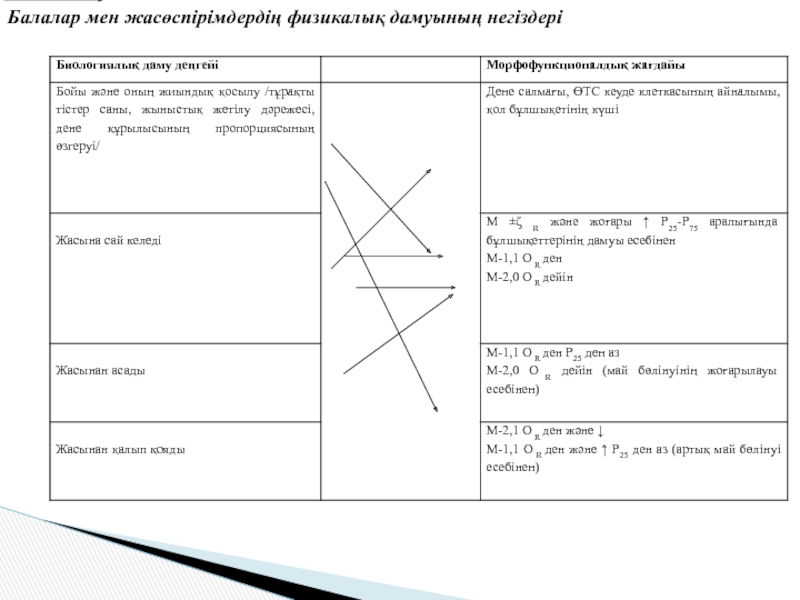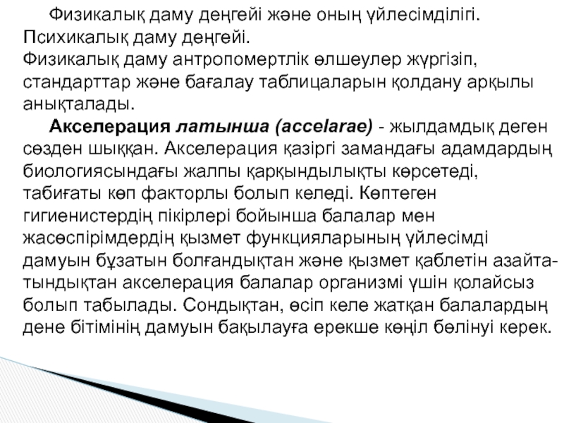 Слайд 4Балалар мен жасөспірімдердің физикалық дамуы, морфологиялық және функционалдық жағдайының қасиеттері
