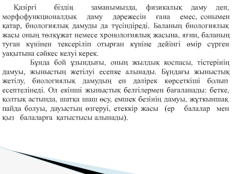Слайд 3Қазіргі біздің заманымызда, физикалық даму деп, морфофункционалдық даму