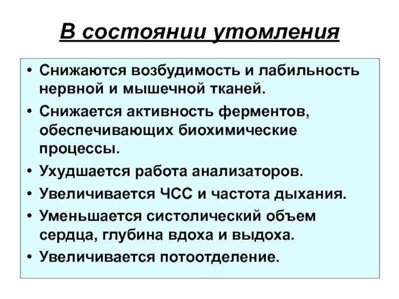 Ф. пониженной работоспособности (после окончания работы). Повторные нагрузки в