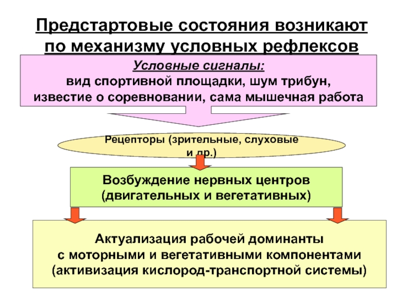 Слайд 4Предстартовые состояния возникают по механизму условных рефлексов