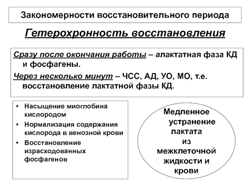 несколько минут – ЧСС, АД, УО, МО, т.е. восстановление лактатной фазы КД.