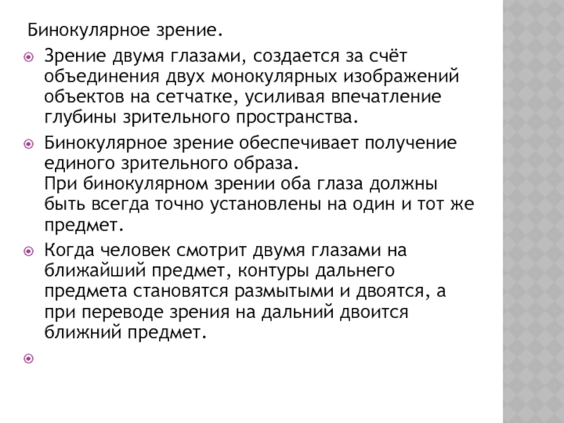 Слайд 12Бинокулярное зрение.