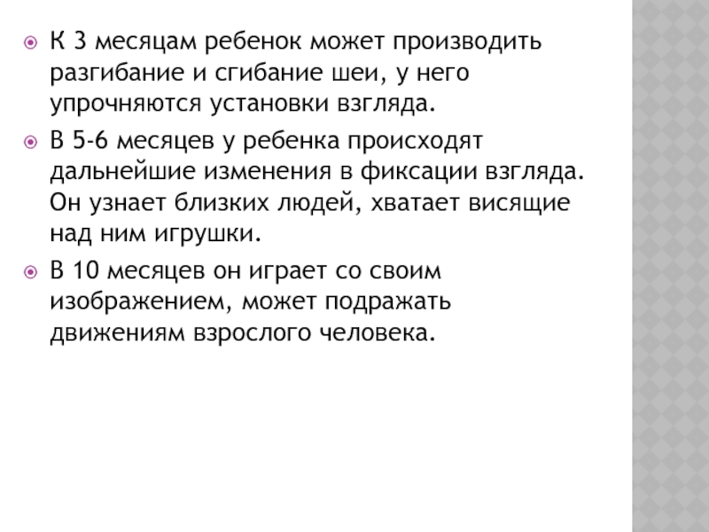 Слайд 23К 3 месяцам ребенок может производить разгибание и сгибание шеи,
