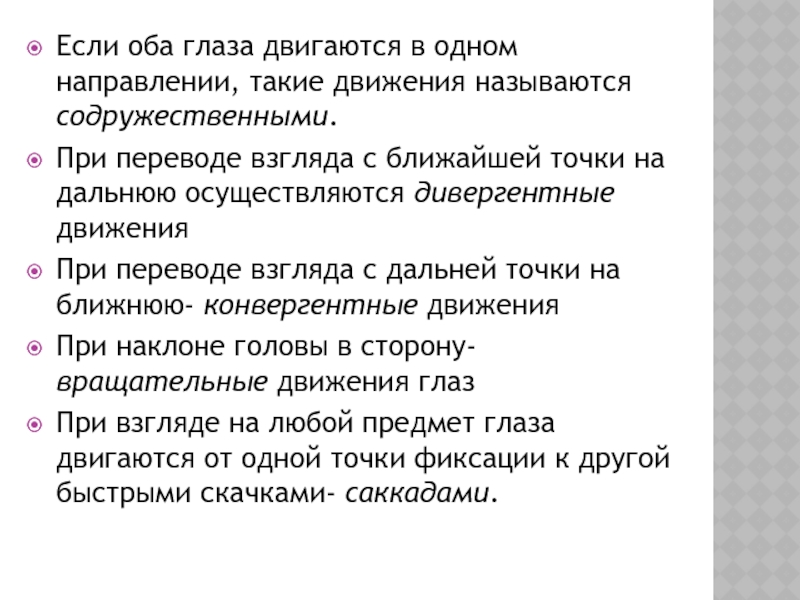 Слайд 20Если оба глаза двигаются в одном направлении, такие движения называются