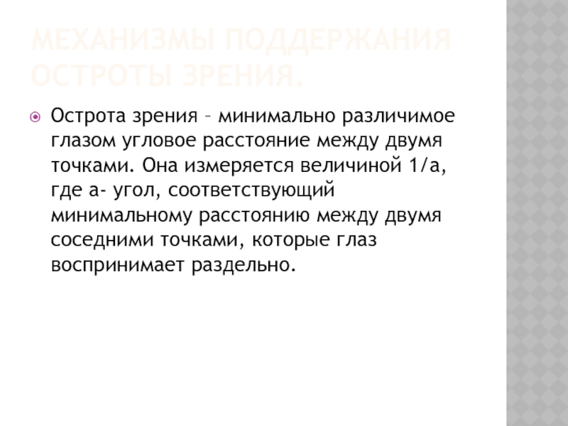 Слайд 14Механизмы поддержания остроты зрения.