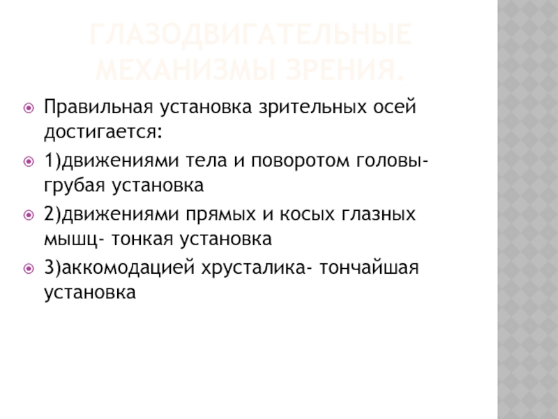 Слайд 19Глазодвигательные механизмы зрения.