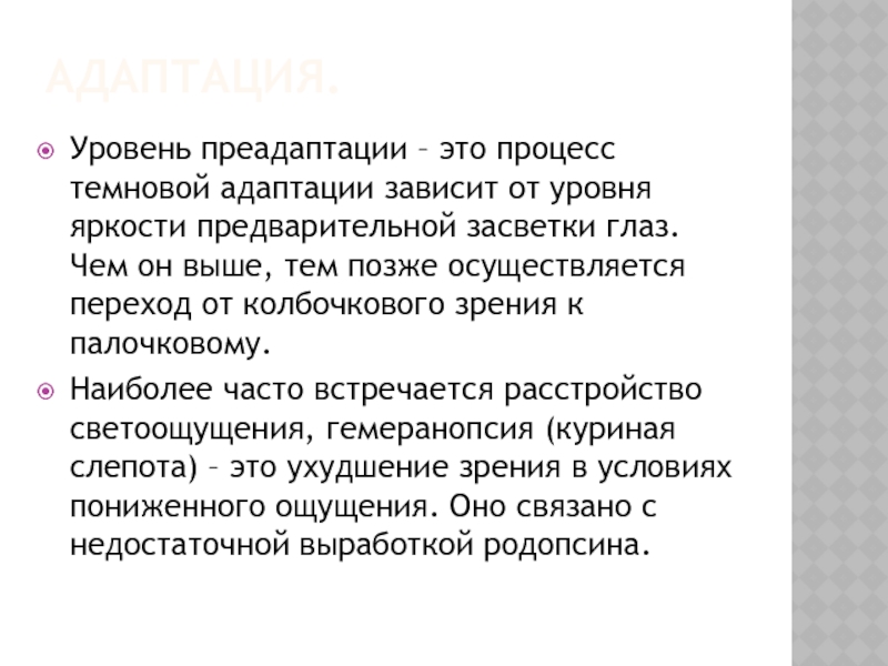 Уровень преадаптации – это процесс темновой адаптации зависит от уровня