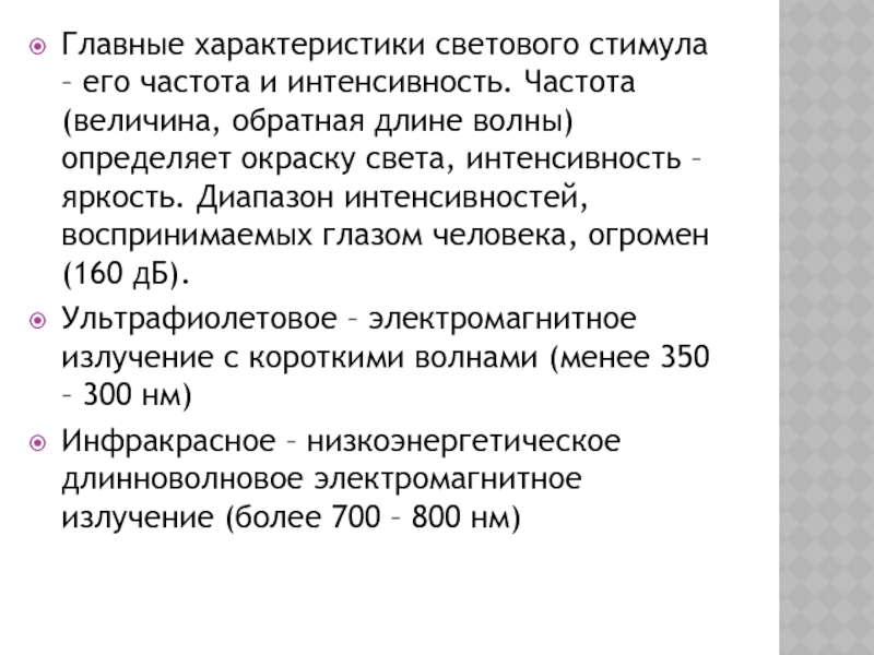Слайд 4Главные характеристики светового стимула – его частота и интенсивность. Частота