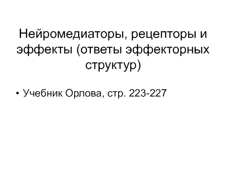 Слайд 19Нейромедиаторы, рецепторы и эффекты (ответы эффекторных структур)