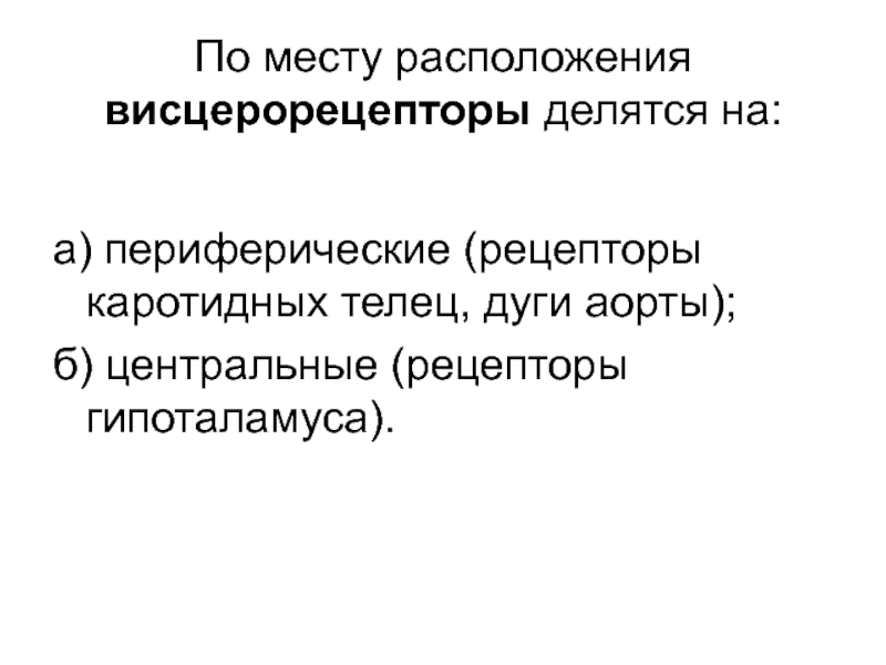 а) периферические (рецепторы каротидных телец, дуги аорты);