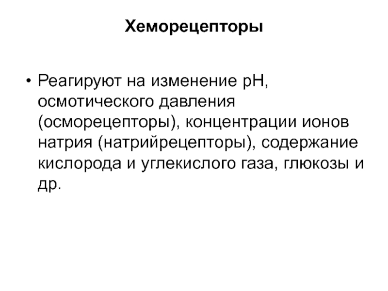 Реагируют на изменение рН, осмотического давления (осморецепторы), концентрации ионов натрия