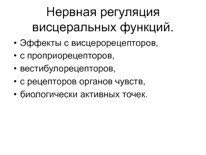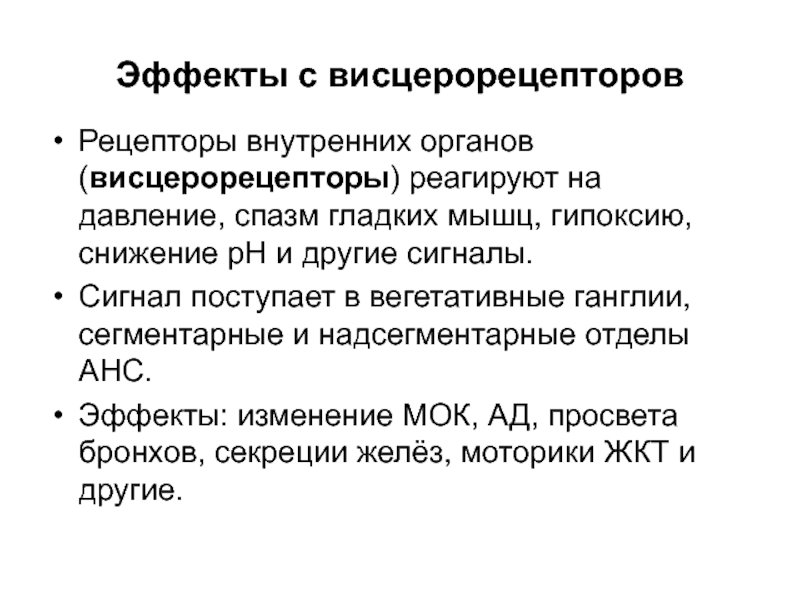 Нервная регуляция висцеральных функций. Эффекты с висцерорецепторов (классификация висцерорецепторов, висцерорефлексов, уровни замыкания их рефлекторных дуг).