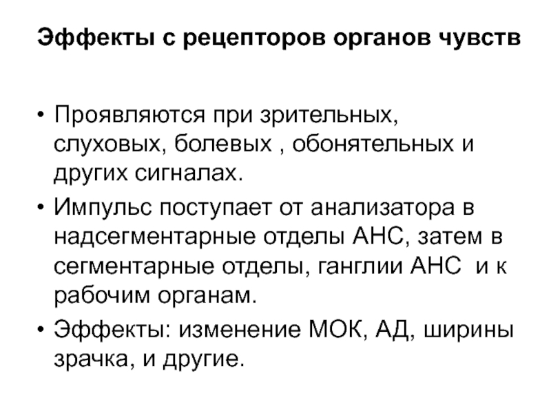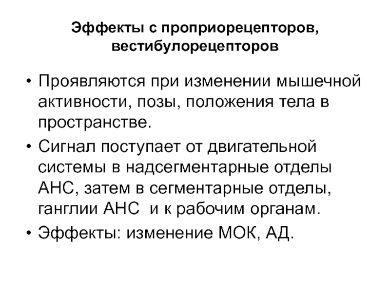 Эффекты с проприорецепторов, вестибулорецепторов, с рецепторов органов чувств, биологически активных точек.