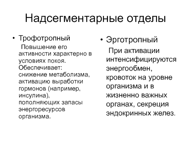 Повышение его активности характерно в условиях покоя. Обеспечивает: снижение
