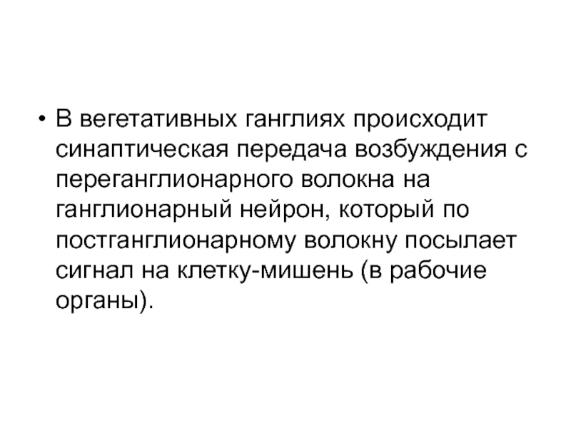 В вегетативных ганглиях происходит синаптическая передача возбуждения с переганглионарного волокна