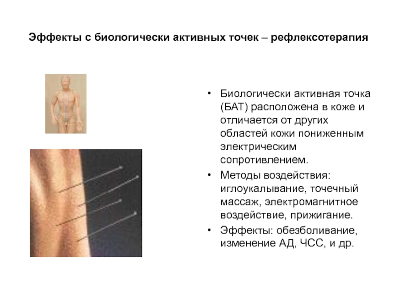 Слайд 35Эффекты с биологически активных точек – рефлексотерапия