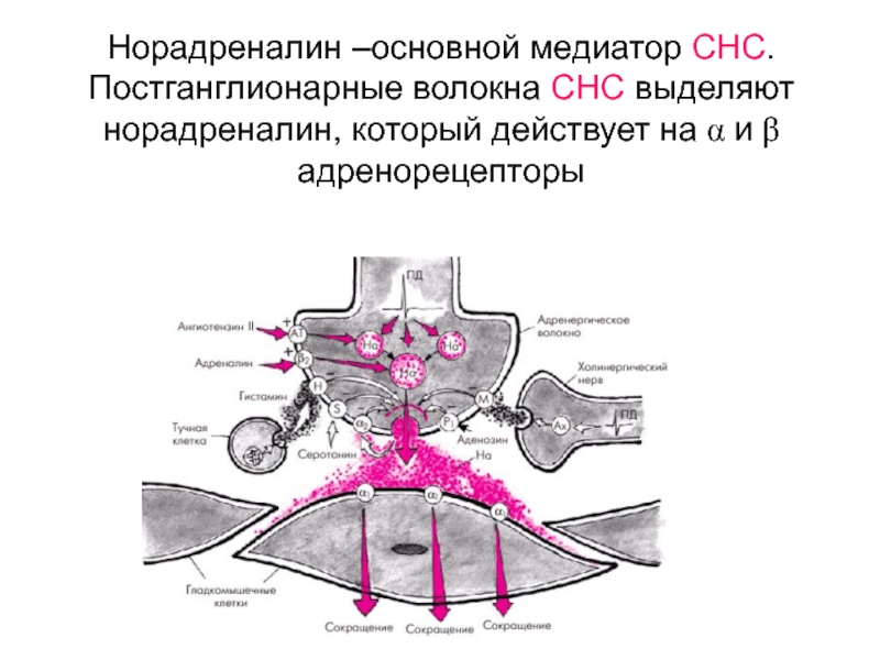 Постганглионарные волокна СНС выделяют норадреналин, который