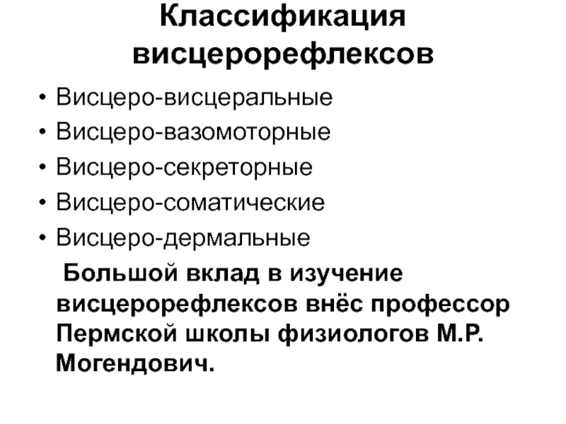 Большой вклад в изучение висцерорефлексов внёс профессор Пермской школы