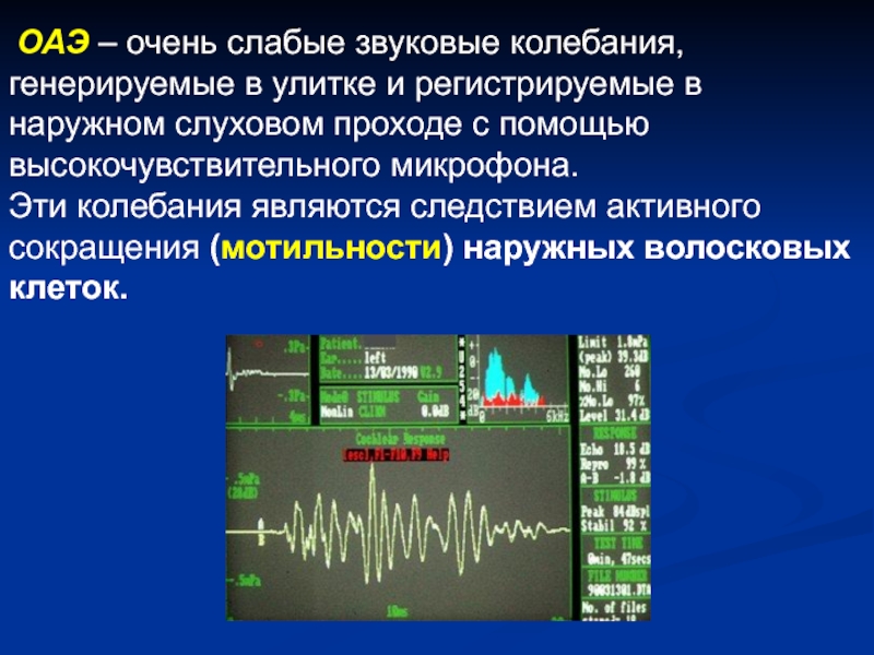 Слайд 40 ОАЭ – очень слабые звуковые колебания, генерируемые в улитке