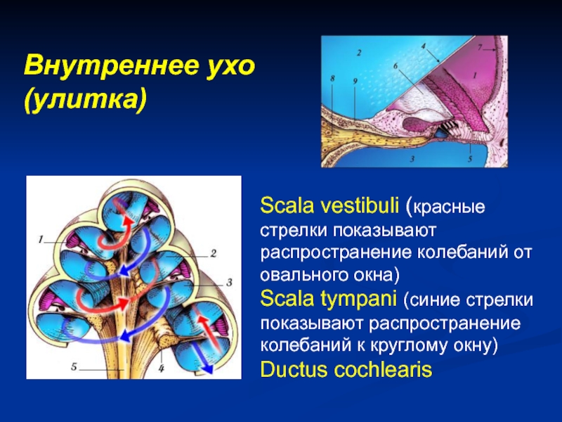 ухо; среднее ухо; жидкостные среды и мембраны улитки).