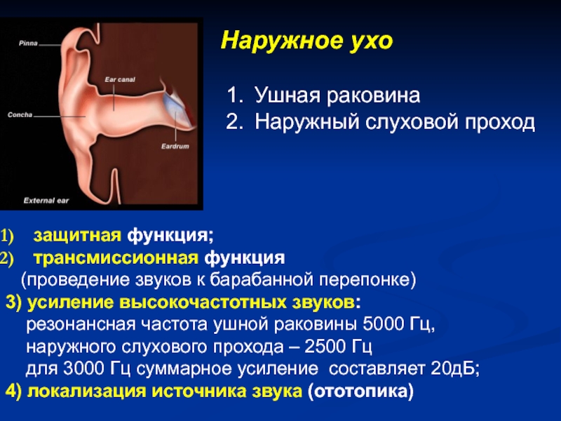 Звукопроведение – доставка звуковой волны к рецепторному аппарату улитки (наружное