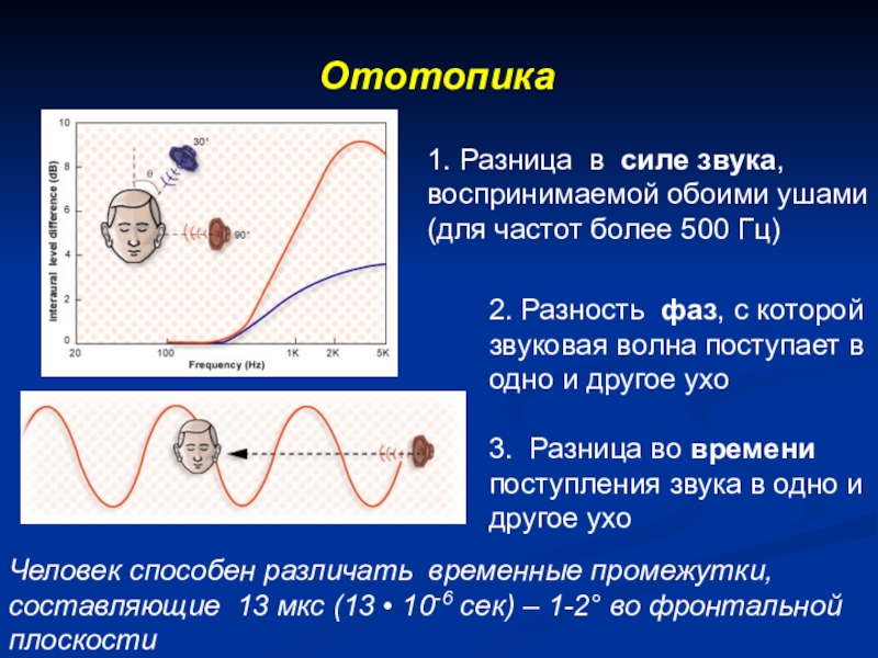 Человек способен различать временные промежутки, составляющие 13 мкс (13 • 10-6 сек) – 1-2° во фронтальной плоскости
