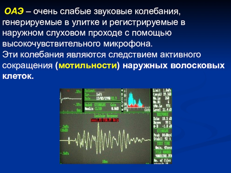 Слайд 40 ОАЭ – очень слабые звуковые колебания, генерируемые в улитке