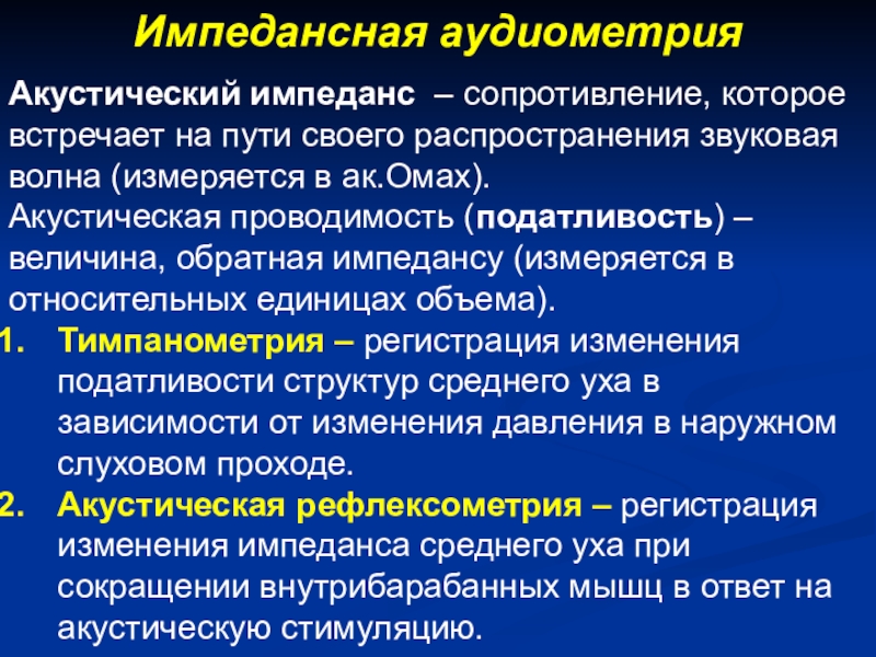Слайд 43Импедансная аудиометрия