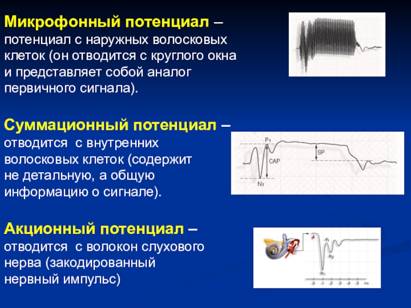 электрической активности улитки и слухового нерва.